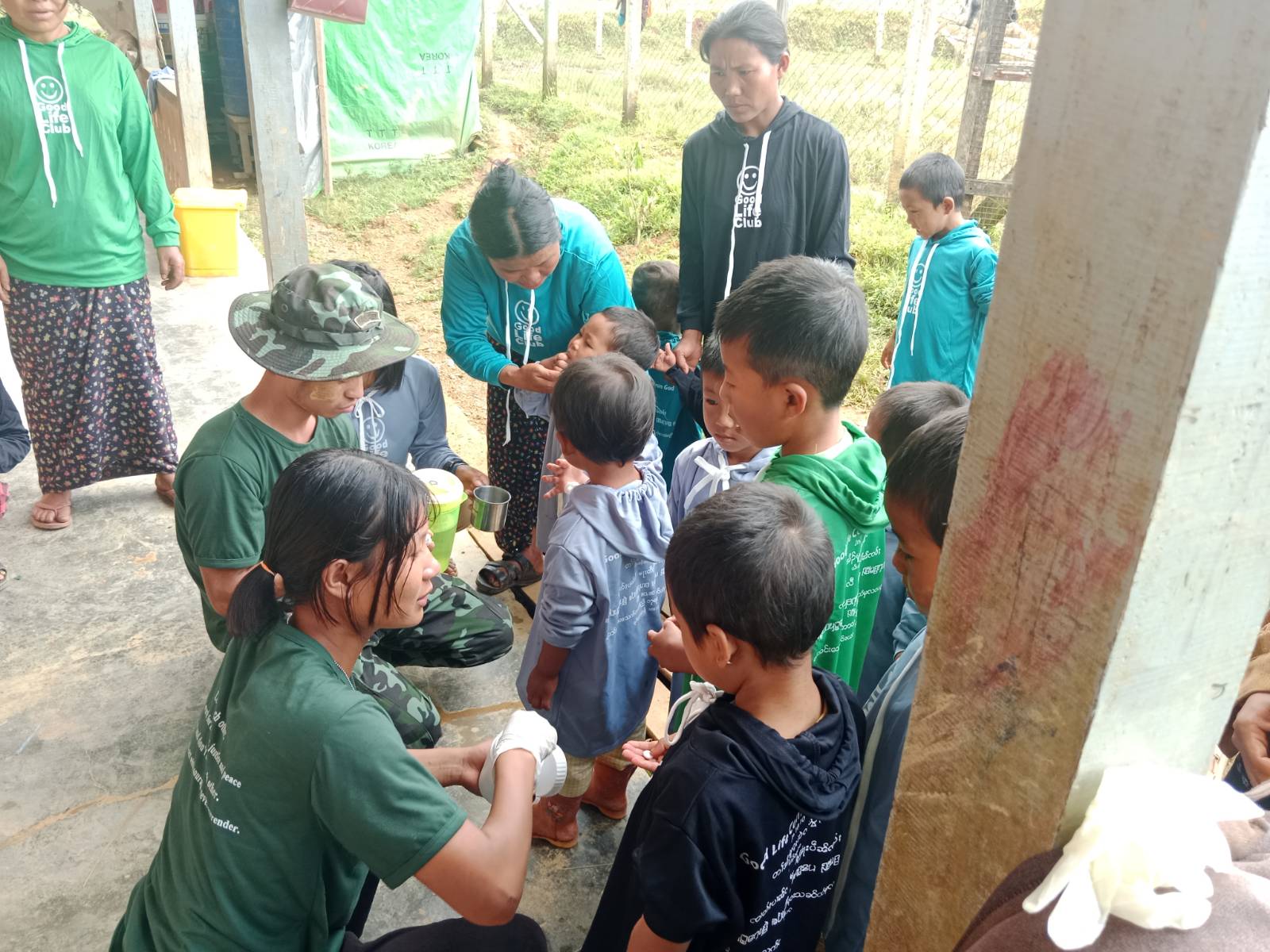 Right: Medics deliver vitamins and nutritional supplements in Do Raw Htet Village.