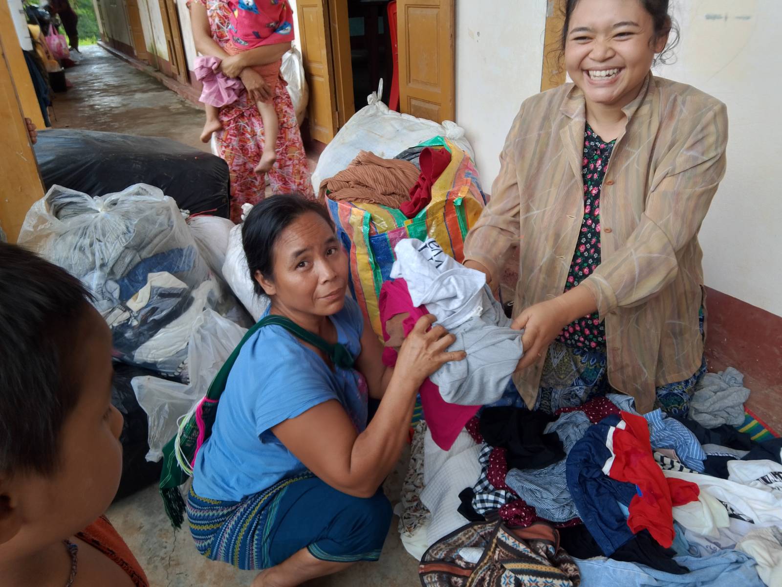Left: Ranger teams distribute clothes to IDPs in Su Ka Li Township.