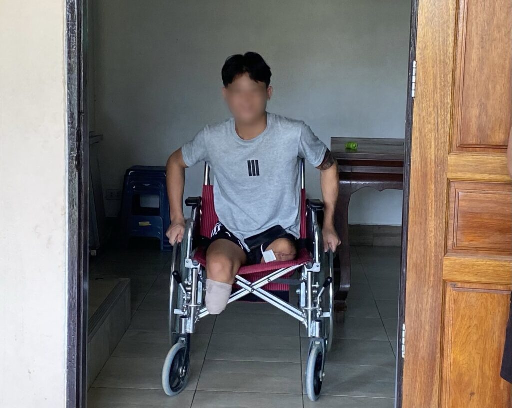 When we met him, he’d been at this location receiving treatment for roughly one month after getting injured in June. “After surgery, I feel like it’s still pain. It’s hard for me to walk and to sleep.”