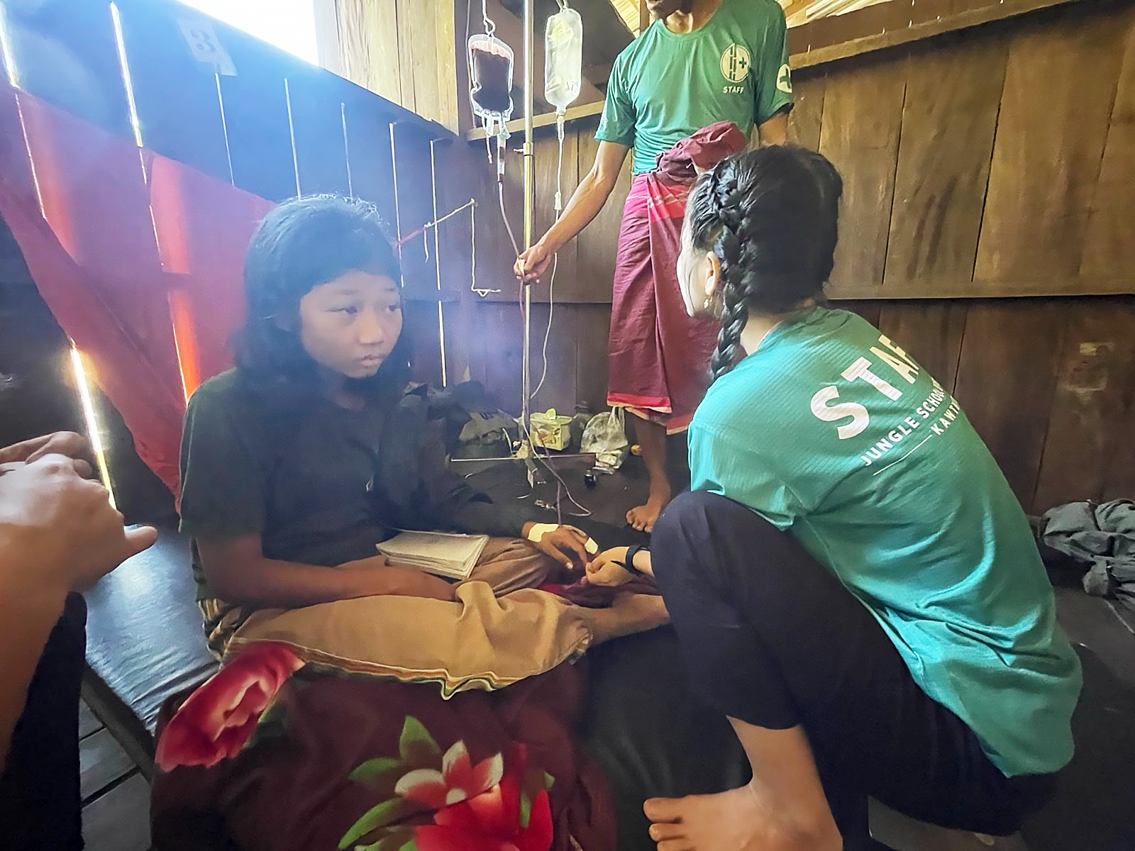 A young woman is treated by medics from FBR’s Jungle School of Medicine Kawthoolei. |